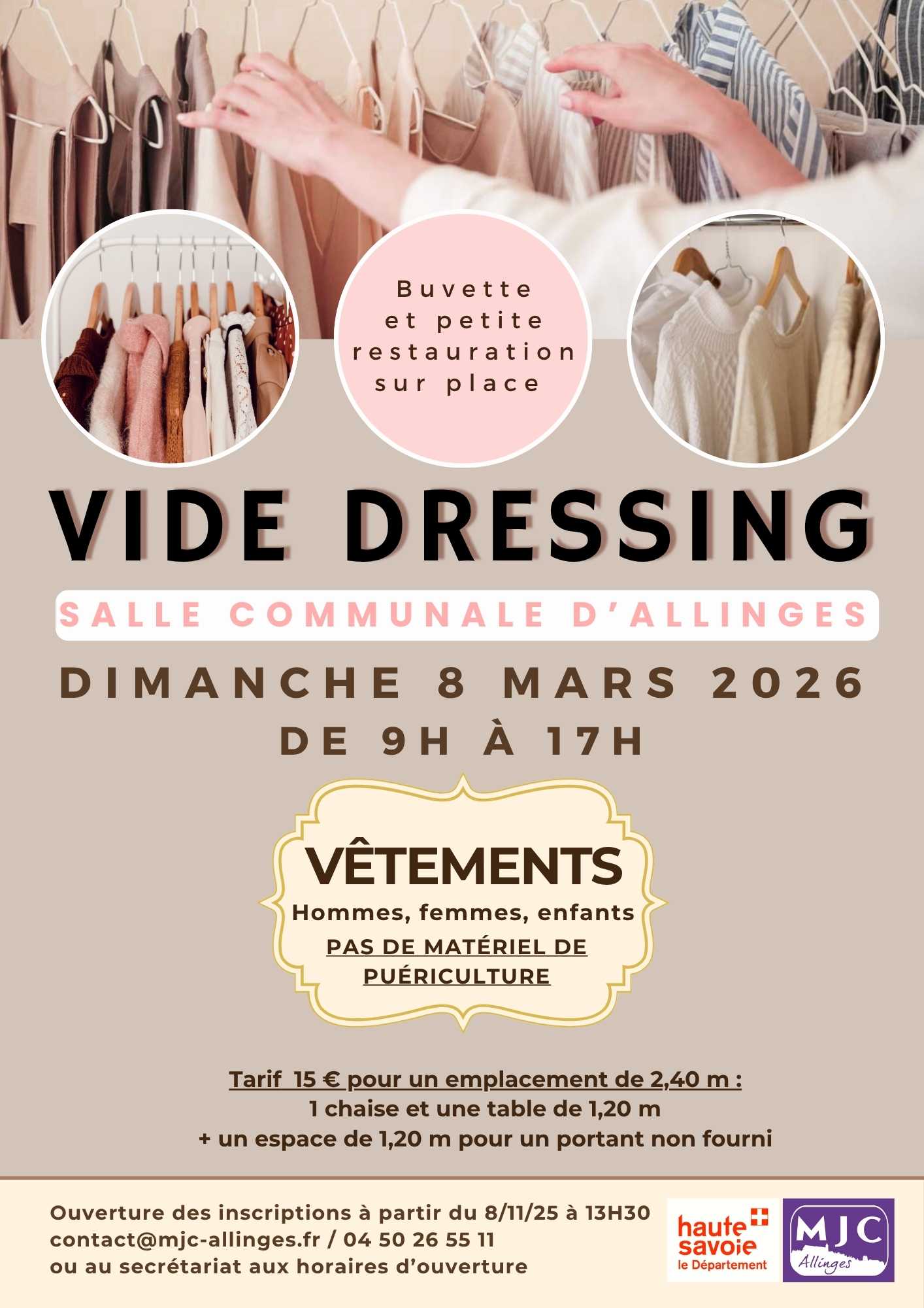 inscription à compter du samedi 08.11 à 13h30 au secrétariat, emplacement en intérieur 2.40m au tarif de 15€ (1.20m table +chaise fournies et 1.20m pour le portant non fourni, possibilité de mettre 1 table si pas de portant à préciser à l'inscription) Buvette et petite restauration toute la journée
