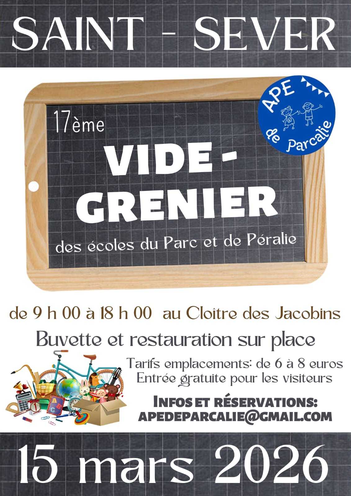 Vide grenier APE de Parcalie le dimanche 15 MARS 2026
