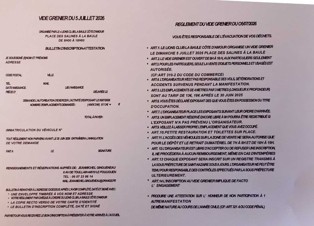 Vide-greniers organisé au profit des oeuvres sociales et caritatives du Lions Club
