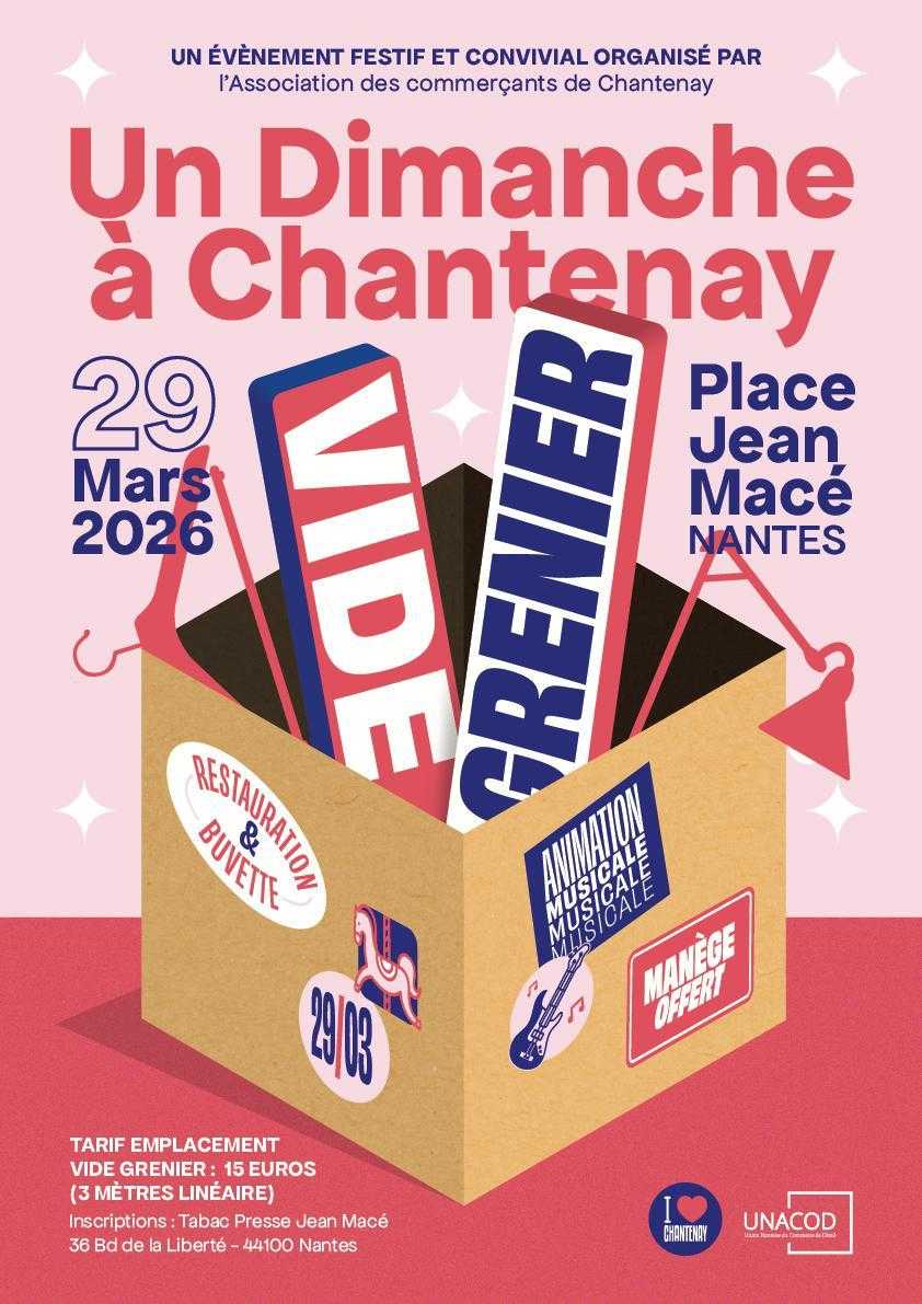 Vide-greniers Chantenay 6h30 18h00 pour les exposants 15euros les 3 mètres 8h00 18h00 pour les visiteurs Manège gratuit Buvette
